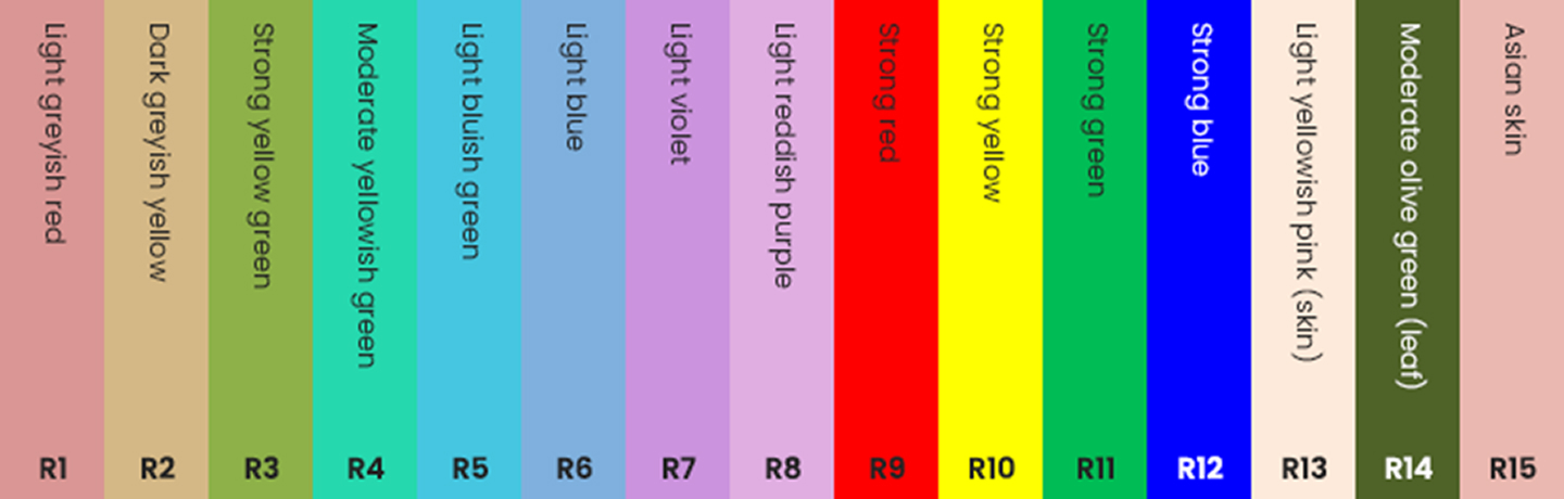 추가적으로 R9~R14까지의 색상을 테스트하여 인공광원의 연색성을 더 자세히 측정할 수 있습니다.