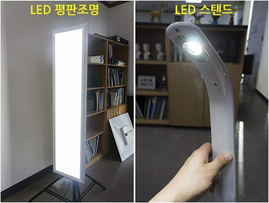 면광원의 대표적인 제품인 평판조명과 점광원인 스탠드를 이용해 비교해보겠습니다.